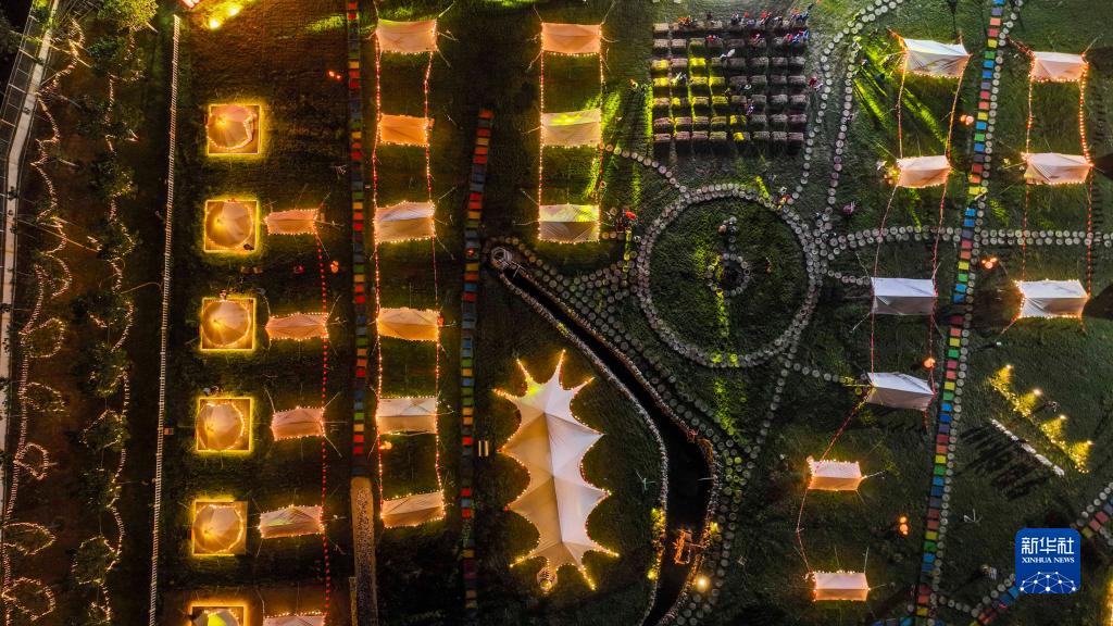 10月5日晚拍攝的河北省遵化市一處露營(yíng)景區夜景(無(wú)人機照片)。