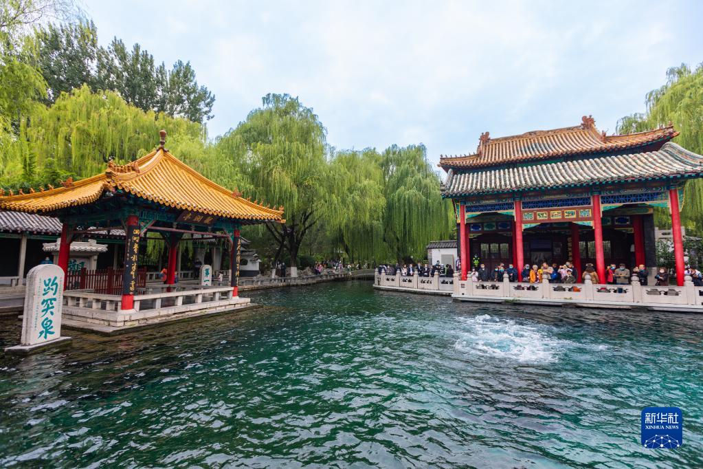 10月6日,游客在山東濟南趵突泉景區賞泉。