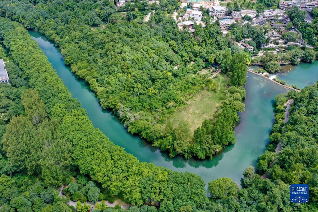 貴陽(yáng)市花溪國家城市濕地公園黃金大道(2022年7月9日攝,無(wú)人機照片)。新華社記者 歐東衢 攝