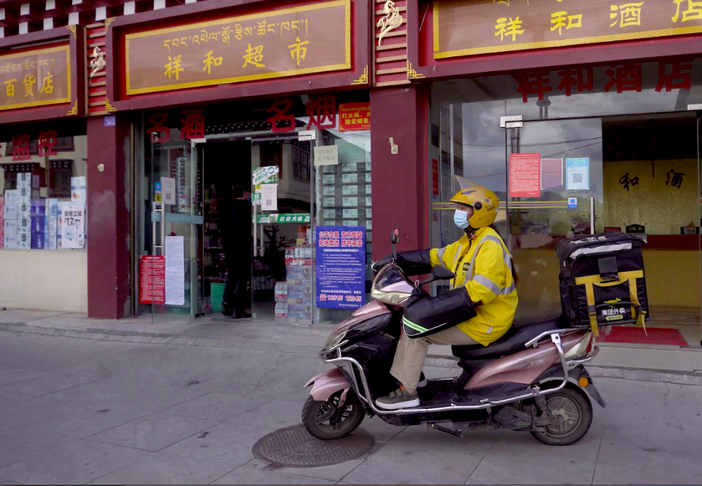 功夫不負有心人。從2020年開(kāi)始,“點(diǎn)外賣(mài)”在色達逐漸興起,獨具風(fēng)味的各式藏餐、暖胃可口的酥油奶茶、便攜隨吸的氧氣瓶都成了熱銷(xiāo)商品。越來(lái)越多的藏族群眾開(kāi)始接受并習慣通過(guò)點(diǎn)外賣(mài)讓生活更便捷,越來(lái)越多的本地商家也嘗到了通過(guò)外賣(mài)平臺拉到更多生意的甜頭。