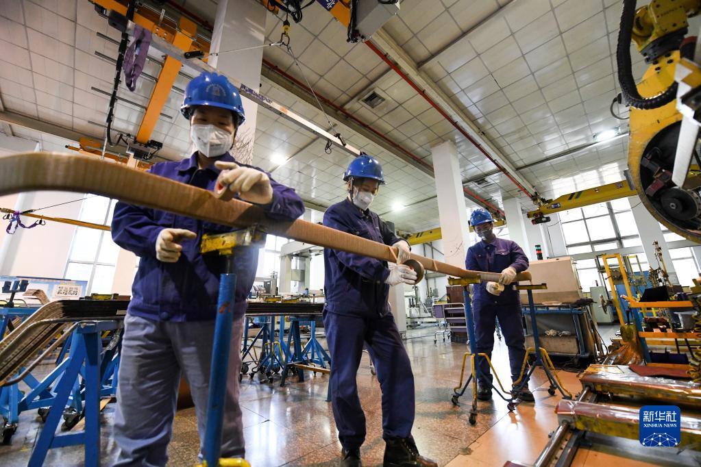 10月6日,在哈電集團哈爾濱電機廠(chǎng)有限責任公司的生產(chǎn)車(chē)間,楊萌(右一)與兩位同事配合作業(yè)。