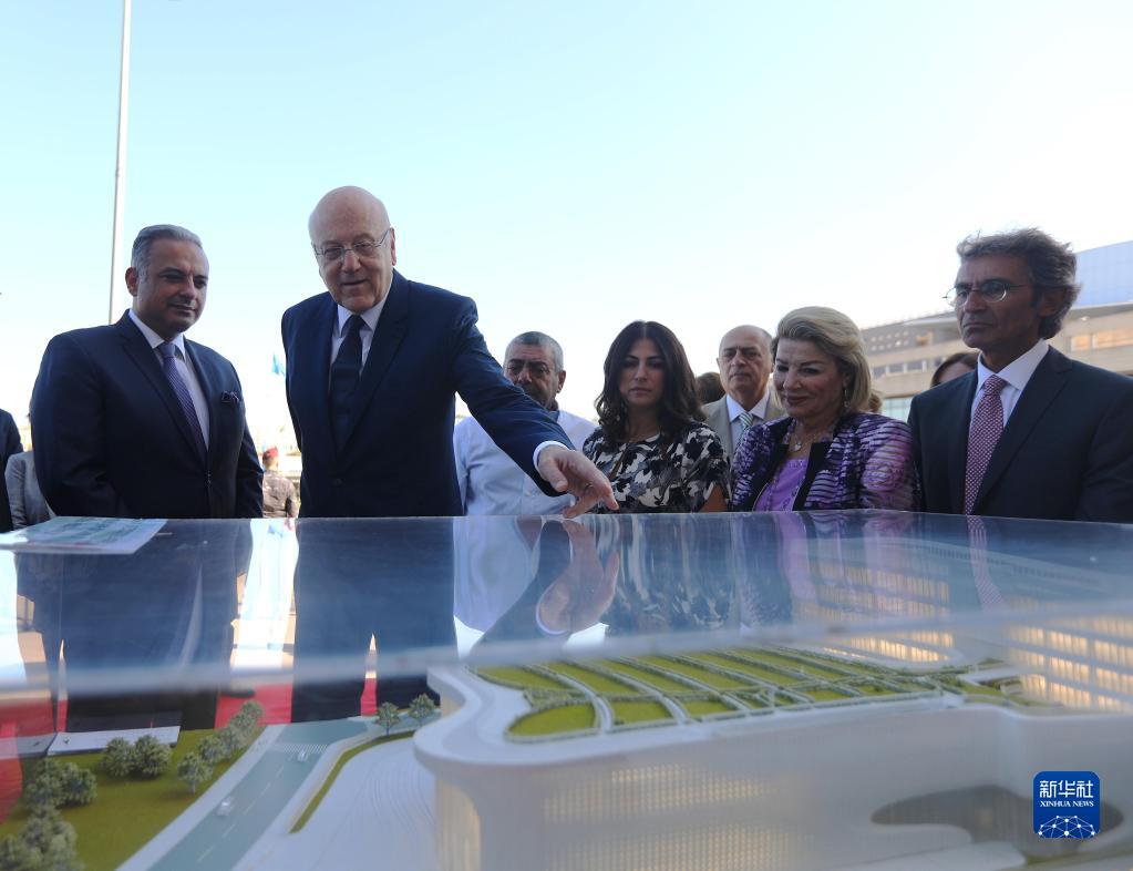10月6日,黎巴嫩總理米卡提參觀(guān)首都貝魯特附近的中國援助黎巴嫩國家高等音樂(lè )學(xué)院項目,感謝中國政府在多方面給予黎巴嫩的幫助。這是米卡提(左二)觀(guān)看音樂(lè )學(xué)院建筑模型。