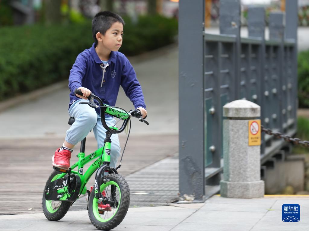 10月7日,小朋友在上海徐家匯公園內游玩。