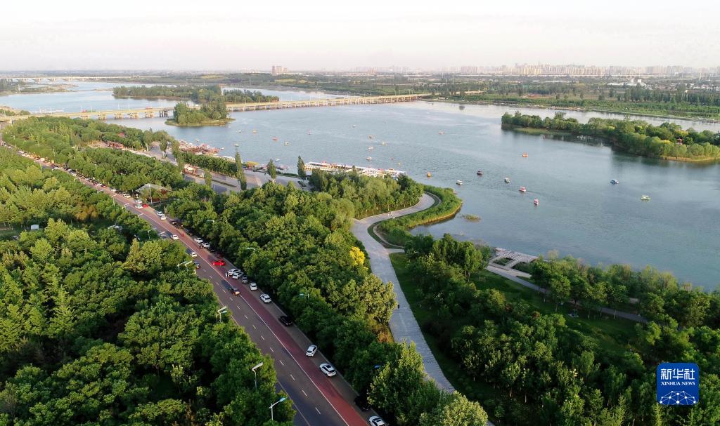 2022年5月15日在河北石家莊拍攝的滹沱河一景(無(wú)人機照片)。