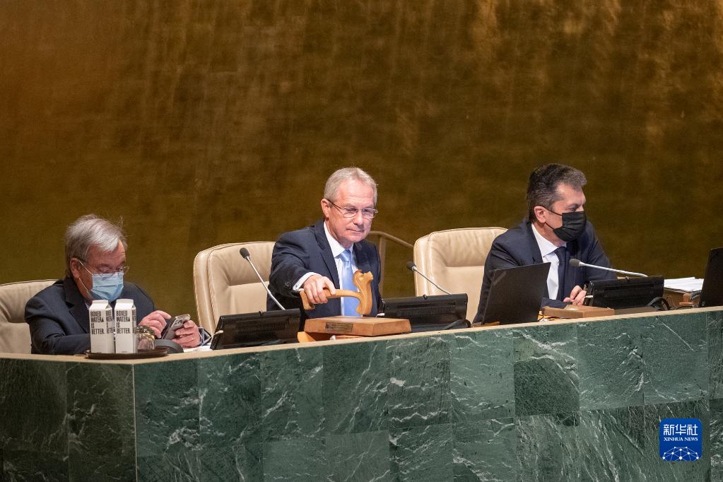 10月7日,在位于紐約的聯(lián)合國總部,第77屆聯(lián)大主席克勒希(中)參加就巴基斯坦洪災舉行的聯(lián)合國大會(huì )全體會(huì )議。