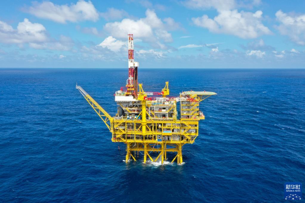 這是深水導管架平臺“?;惶枴保o(wú)人機照片,9月30日攝)。