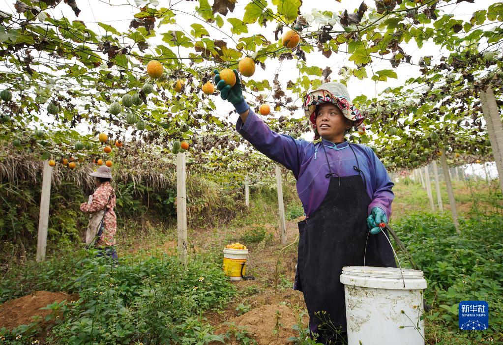 10月8日,貴州省黔東南苗族侗族自治州丹寨縣興仁鎮臺辰村村民在收獲吊瓜。新華社發(fā)(黃曉海 攝)
