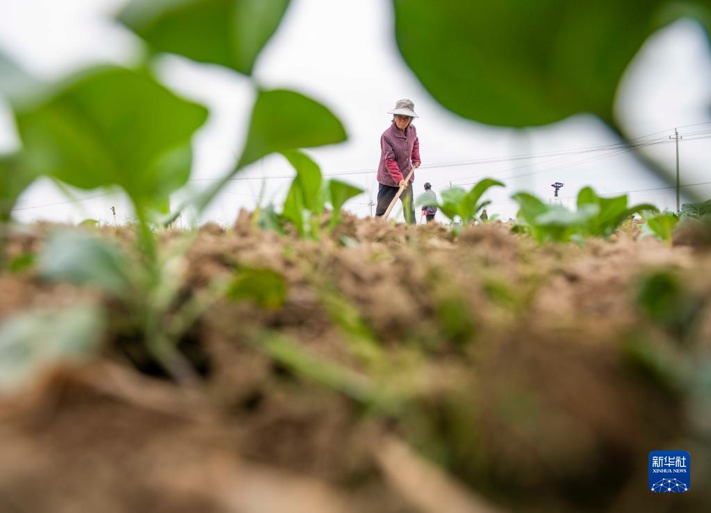 10月8日,村民在湖南省永州市道縣一處農場(chǎng)蔬菜基地勞作。新華社發(fā)(蔣克青 攝)