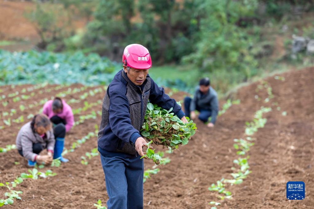 10月8日,村民在貴州省黔西市文峰街道雙星社區栽種油菜。新華社發(fā)(范暉 攝)