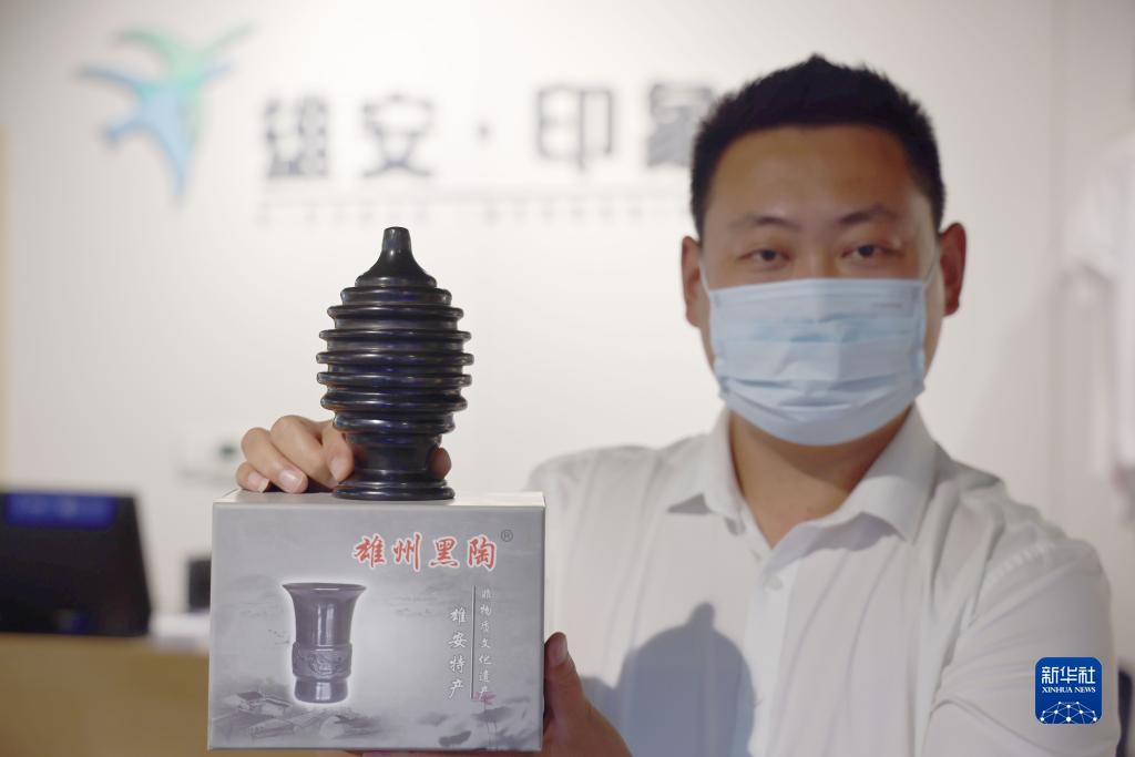 2022年9月6日,工作人員在展示雄安新區的文創(chuàng )紀念品。