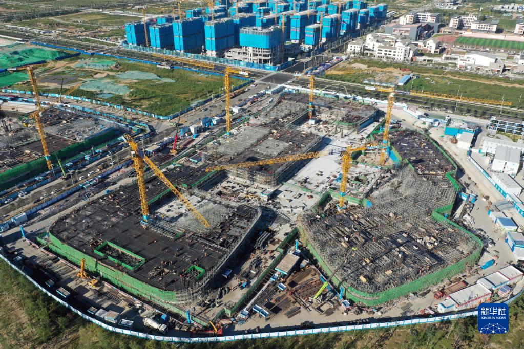 2022年9月7日拍攝的位于雄安新區啟動(dòng)區的中國星網(wǎng)雄安新區總部大樓建設施工現場(chǎng)(無(wú)人機照片)。