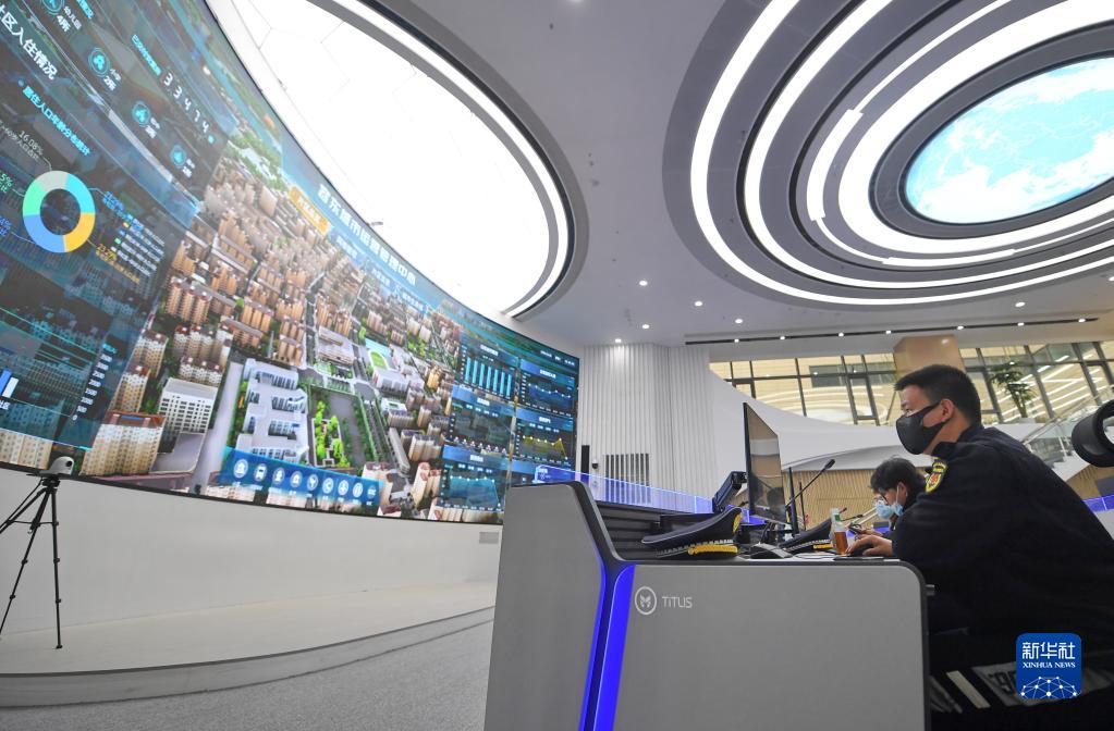 2022年3月29日,工作人員在雄安新區容東城市運營(yíng)管理中心監管平臺工作。