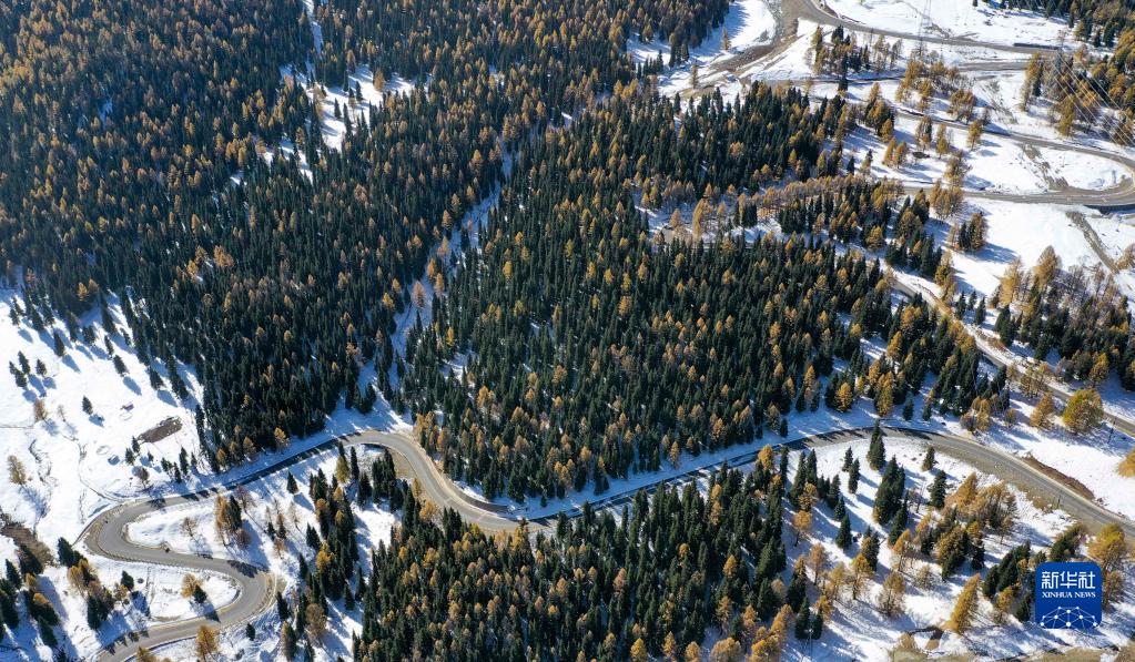 連接新疆哈密市區與巴里坤哈薩克自治縣的公路翻越東天山(2022年10月4日攝,無(wú)人機照片)。