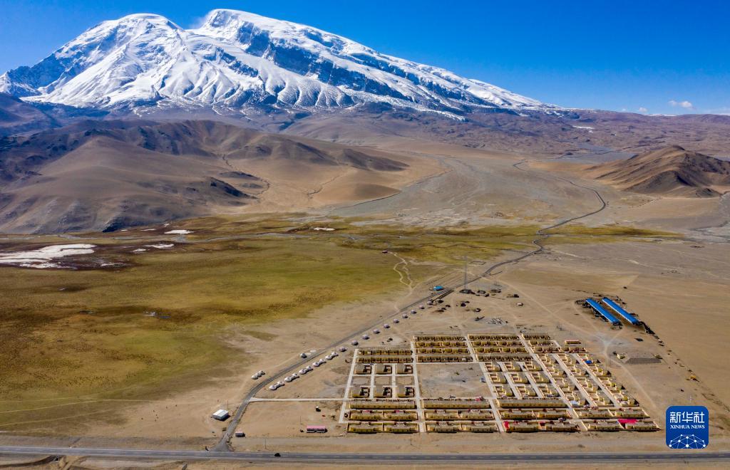 中巴國際公路從新疆阿克陶縣布倫口鄉蘇巴什村三小隊的村前經(jīng)過(guò),村旁還有一條旅游公路將村莊與慕士塔格峰登山大本營(yíng)相連(2021年5月17日攝,無(wú)人機照片)。
