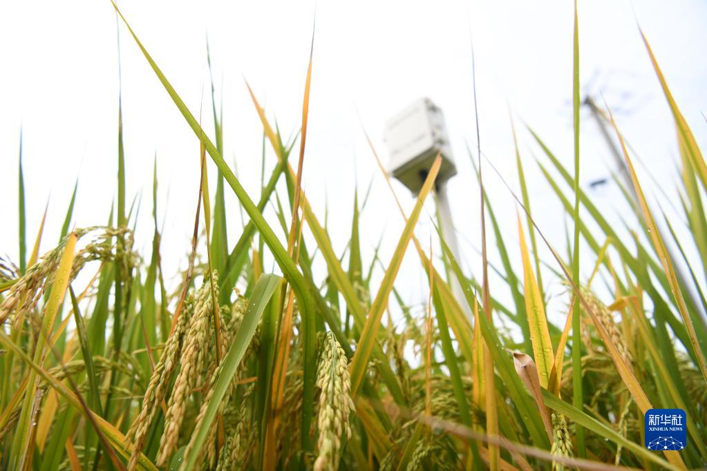 這是蕪湖一農戶(hù)稻田里用于監測土壤墑情和田間水位的智能設備(畫(huà)面后方),該設備由中聯(lián)智慧農業(yè)峨橋示范基地提供推廣(10月9日攝)。