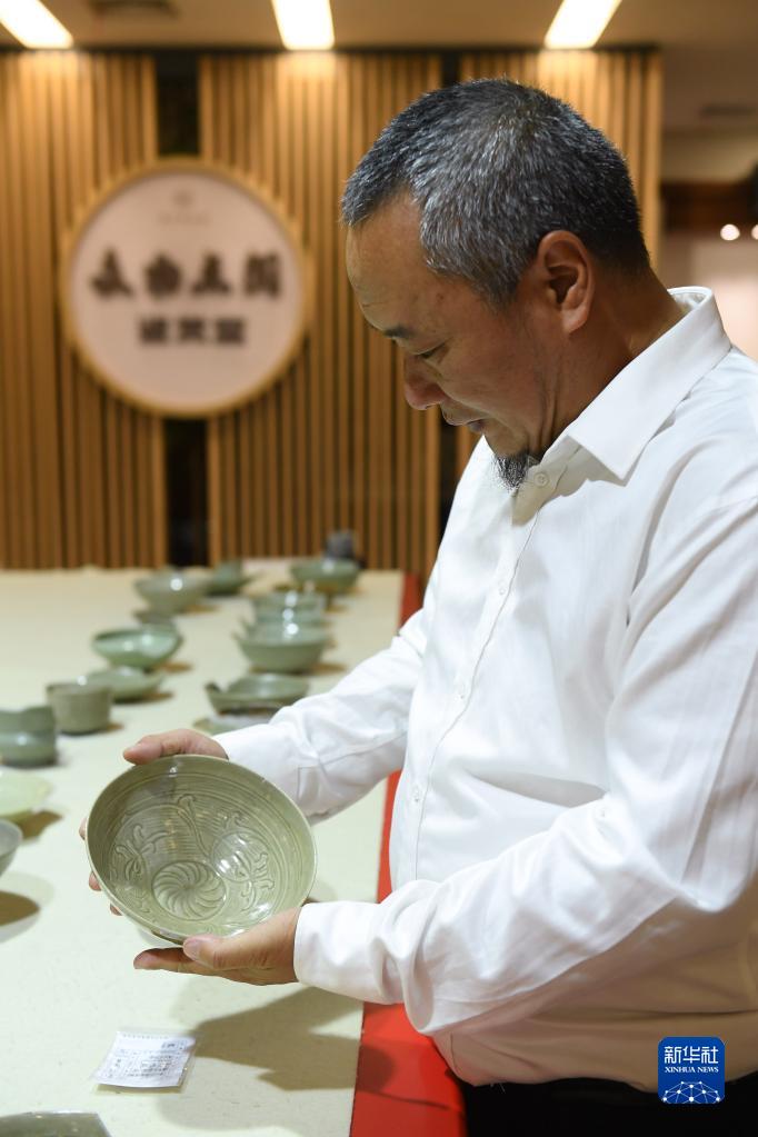 10月11日,溫州市文物考古研究所工作人員在溫州市博物館庫房點(diǎn)閱溫州朔門(mén)古港遺址出土龍泉青瓷器。