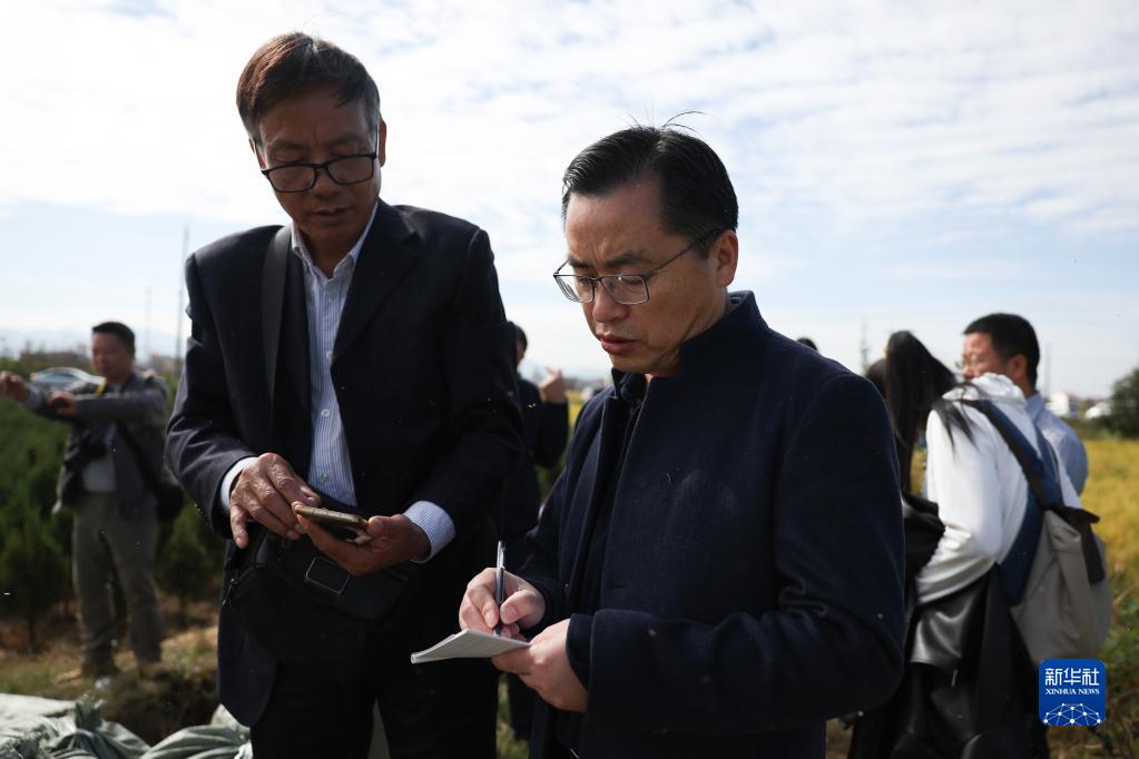 10月11日,工作人員在測產(chǎn)驗收現場(chǎng)記錄稻谷的相關(guān)數據。