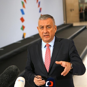 10月12日,在捷克首都布拉格,歐盟輪值主席國捷克工業(yè)和貿易部長(cháng)約瑟夫·西克拉在歐盟能源部長(cháng)非正式會(huì )議前對記者講話(huà)。