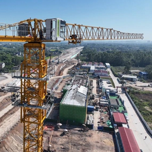 10月13日,在玉林北站站房施工現場(chǎng),塔吊在吊運材料(無(wú)人機照片)。