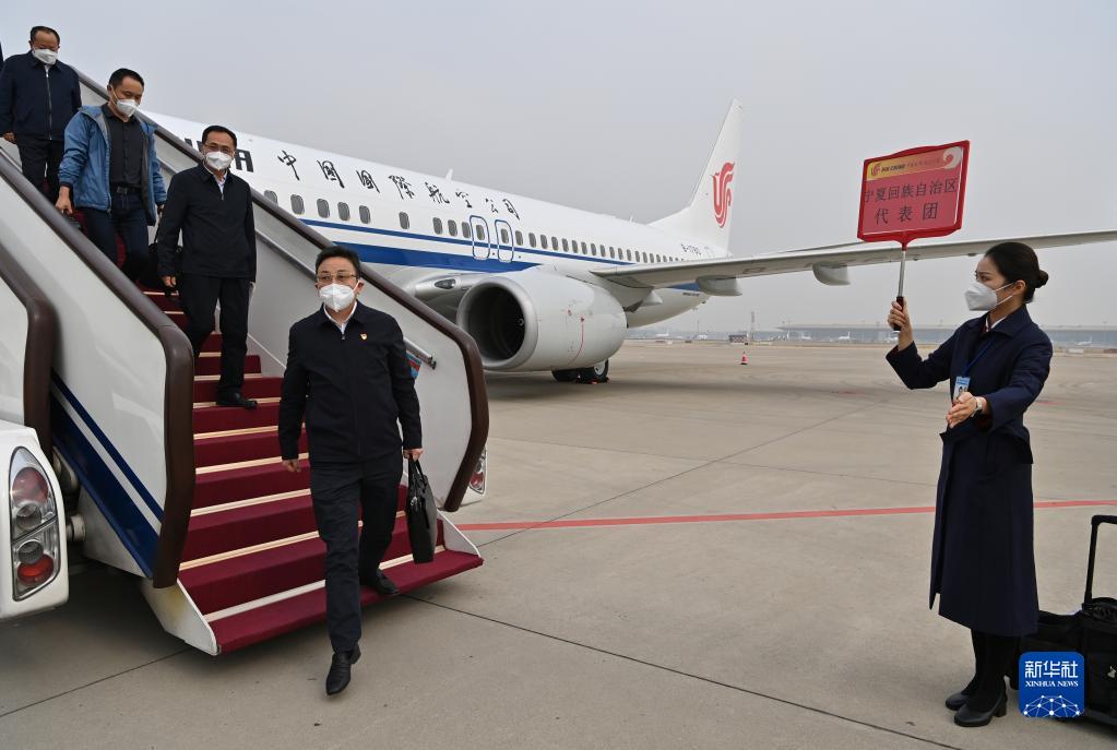 10月13日,來(lái)自寧夏回族自治區的黨的二十大代表乘飛機抵達北京首都國際機場(chǎng)。新華社記者 陳益宸 攝