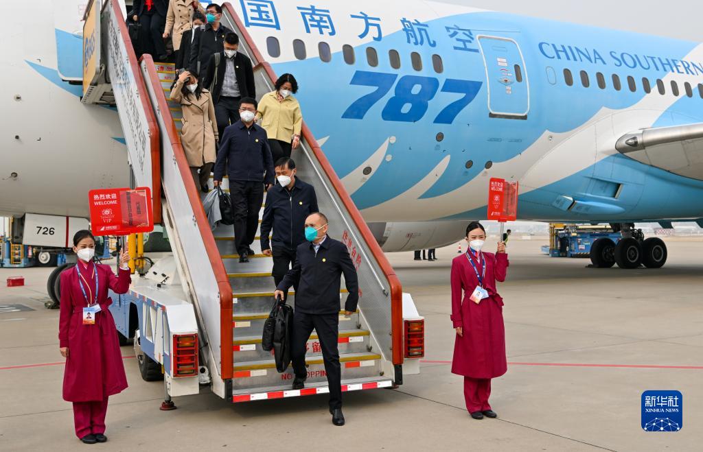 10月13日,來(lái)自新疆維吾爾自治區的黨的二十大代表乘飛機抵達北京首都國際機場(chǎng)。新華社記者 陳益宸 攝