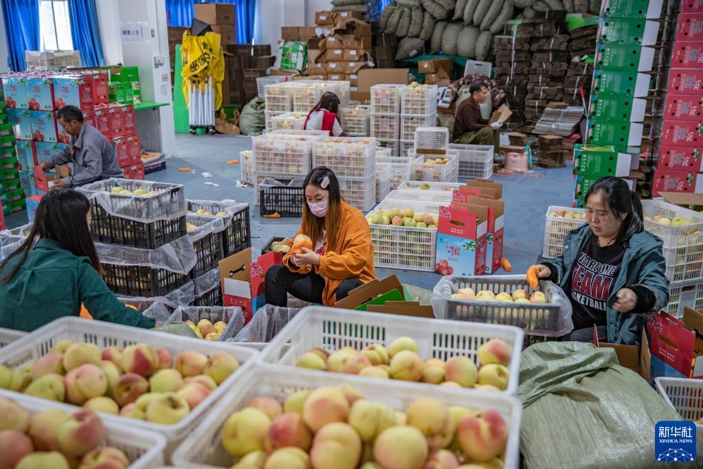 10月13日,在重慶市巫溪縣峰靈鎮,工作人員在分選包裝車(chē)間內將冬桃裝箱。