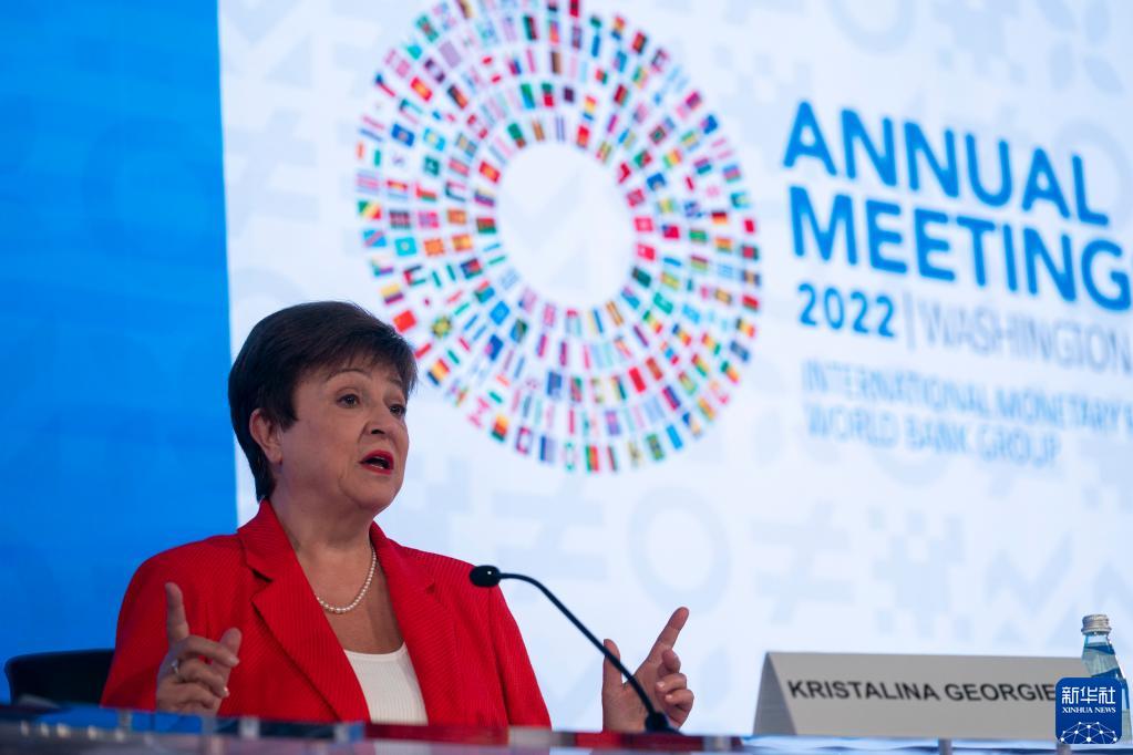 10月13日,在美國華盛頓,國際貨幣基金組織(IMF)總裁格奧爾基耶娃出席記者會(huì )。