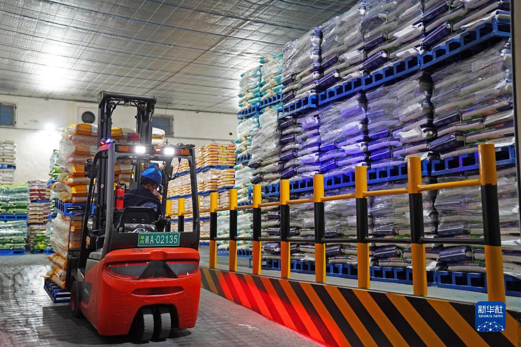 在位于江西省南昌縣的一個(gè)糧食加工工廠(chǎng),工人將包裝好的大米出庫準備運往銷(xiāo)售點(diǎn)(10月11日攝)。