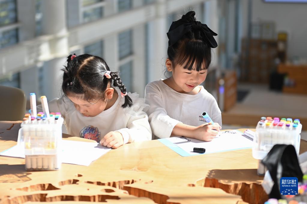 10月14日,湖州市吳興高新區中心幼兒園的小朋友在靈糧農場(chǎng)以水稻為主題進(jìn)行繪畫(huà)。