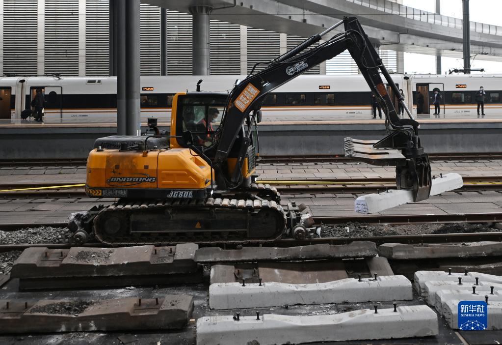 新華全媒+丨搶抓“天窗”時(shí)間 鐵路換枕用上“機器臂”