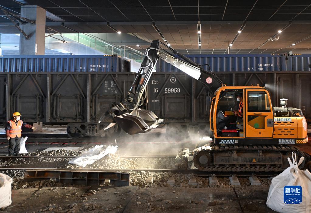 新華全媒+丨搶抓“天窗”時(shí)間 鐵路換枕用上“機器臂”