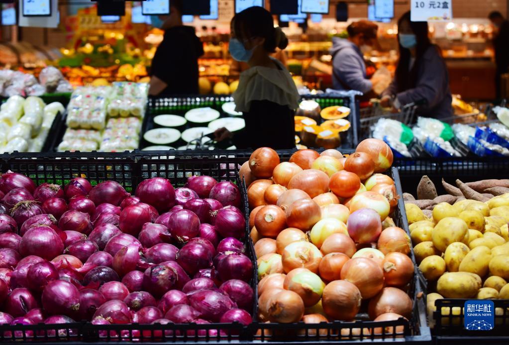 10月14日,消費者在江蘇省無(wú)錫市一家超市選購蔬菜。