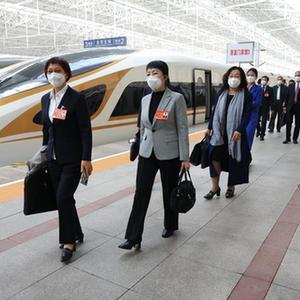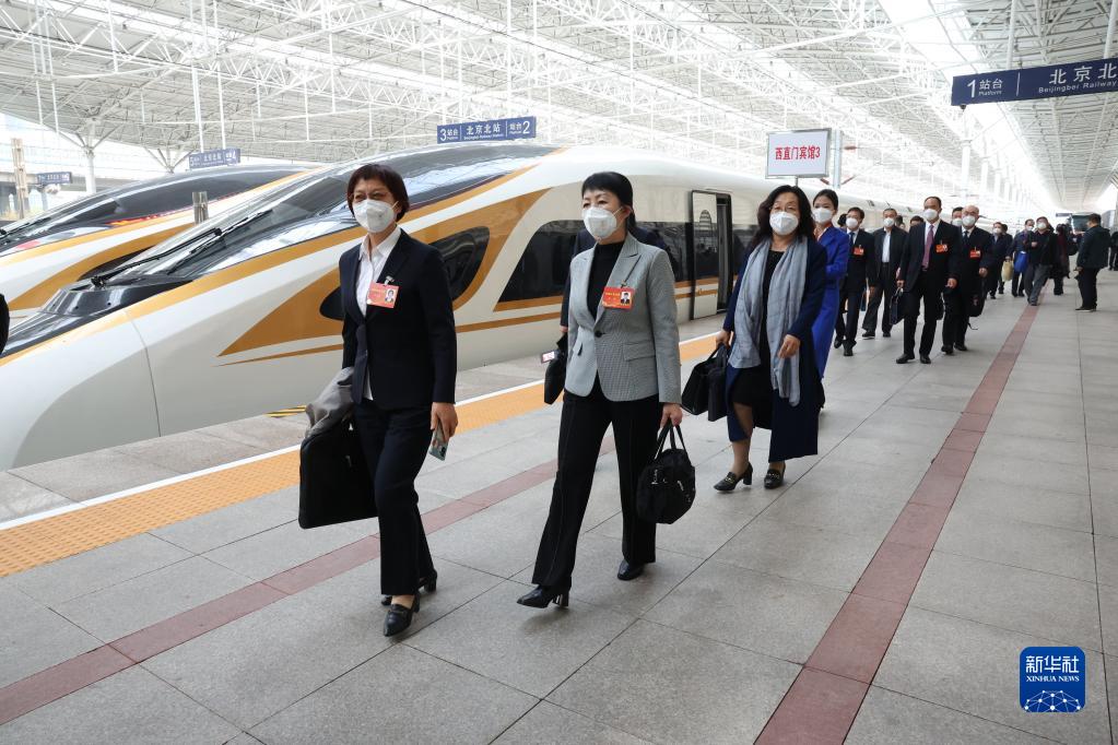 10月13日,來(lái)自?xún)让晒抛灾螀^的黨的二十大代表乘高鐵抵達北京北站。這是當日首個(gè)抵京的京外代表團。