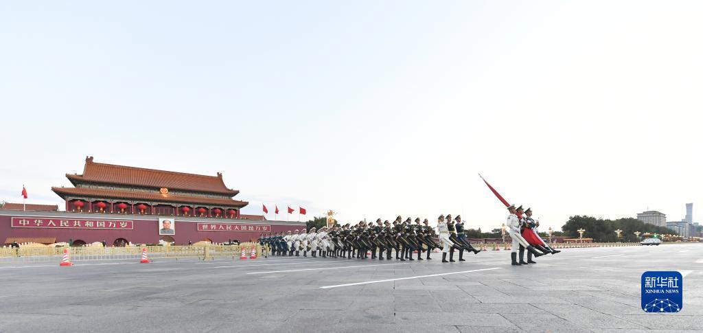 10月16日清晨,北京天安門(mén)廣場(chǎng)舉行升國旗儀式。