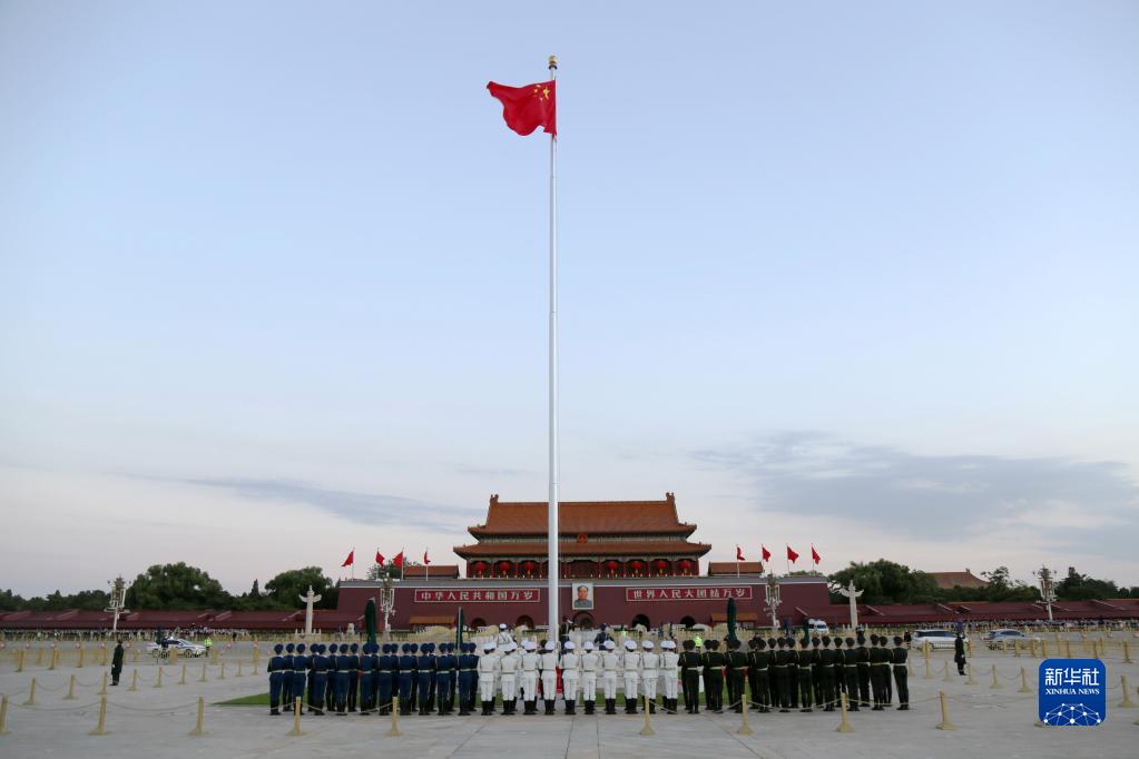 10月16日清晨,北京天安門(mén)廣場(chǎng)舉行升國旗儀式。