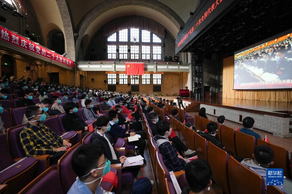 10月16日,在清華大學(xué)大禮堂,清華大學(xué)師生在收看中國共產(chǎn)黨第二十次全國代表大會(huì )開(kāi)幕會(huì )。