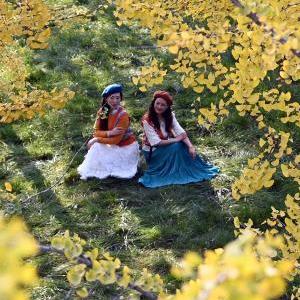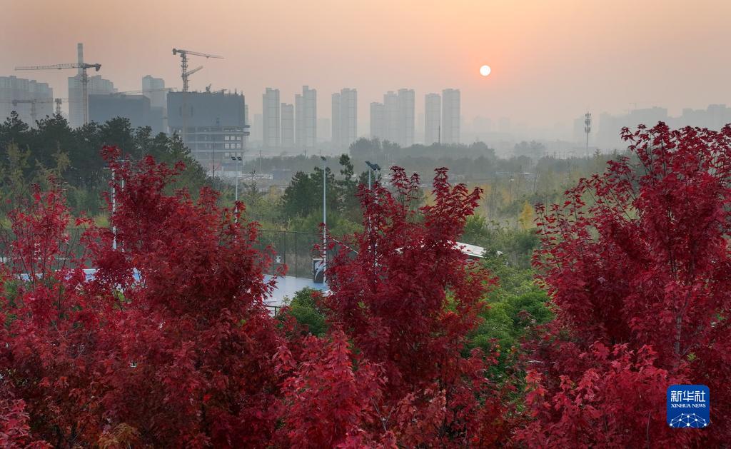 近日,古城西安市雁塔區雁南公園里秋色正濃,吸引游客賞景游玩。