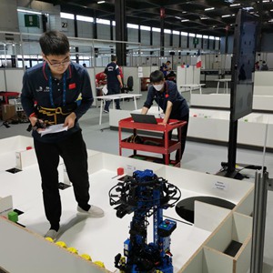 10月19日,中國選手在法國波爾多參加世界技能大賽特別賽移動(dòng)機器人(雙人)項目比賽。