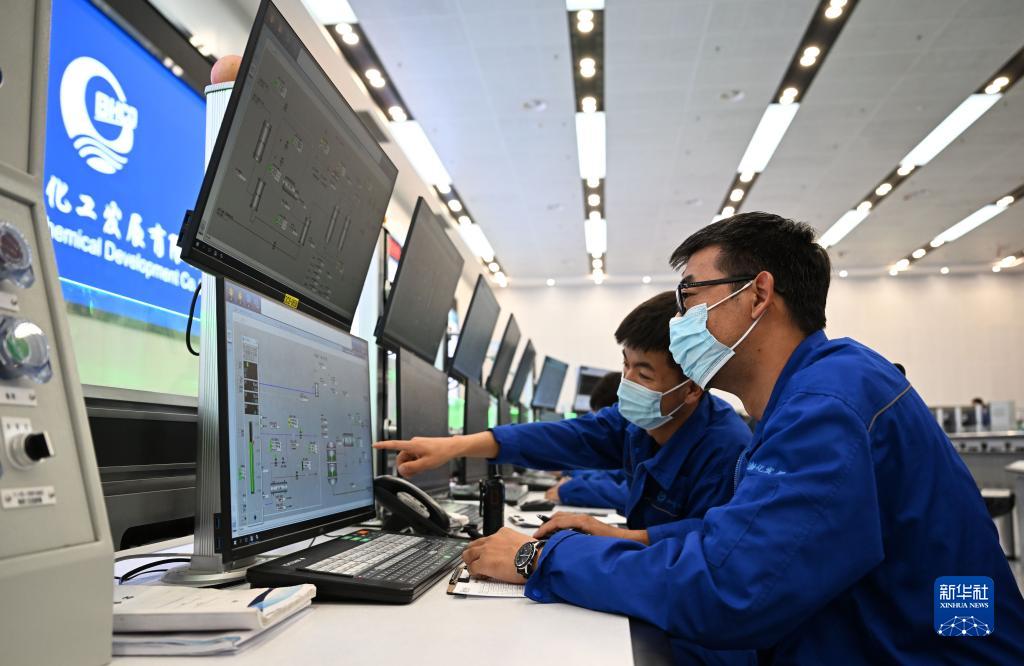 10月19日,天津渤化化工發(fā)展有限公司工作人員在生產(chǎn)控制中心查看設備運行情況。