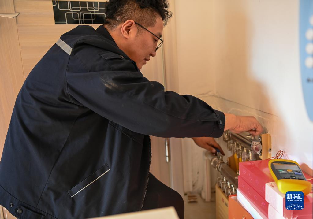 10月20日,吉林省春城熱力股份有限公司永昌事業(yè)部吉大中心站工作人員在居民家內調試供暖設備。