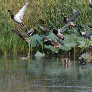 10月20日,鳥(niǎo)兒在十八聯(lián)圩濕地上空飛舞。