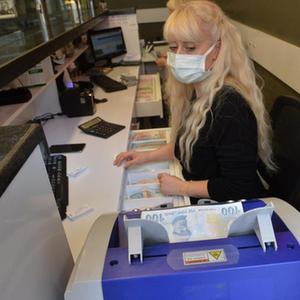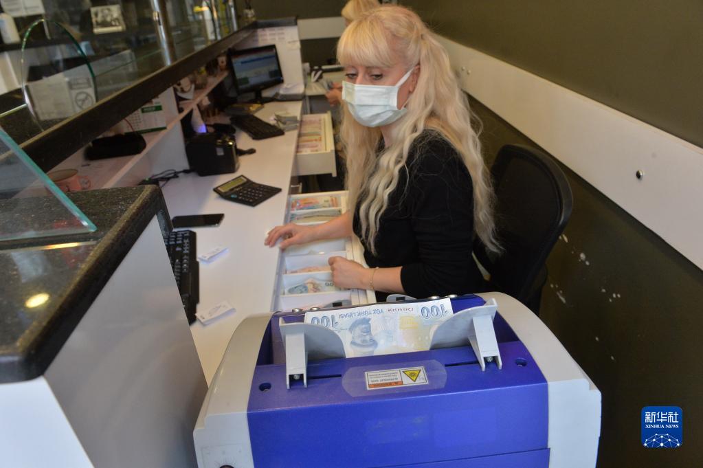 10月20日,工作人員在土耳其安卡拉的一處貨幣兌換點(diǎn)清點(diǎn)紙幣。
