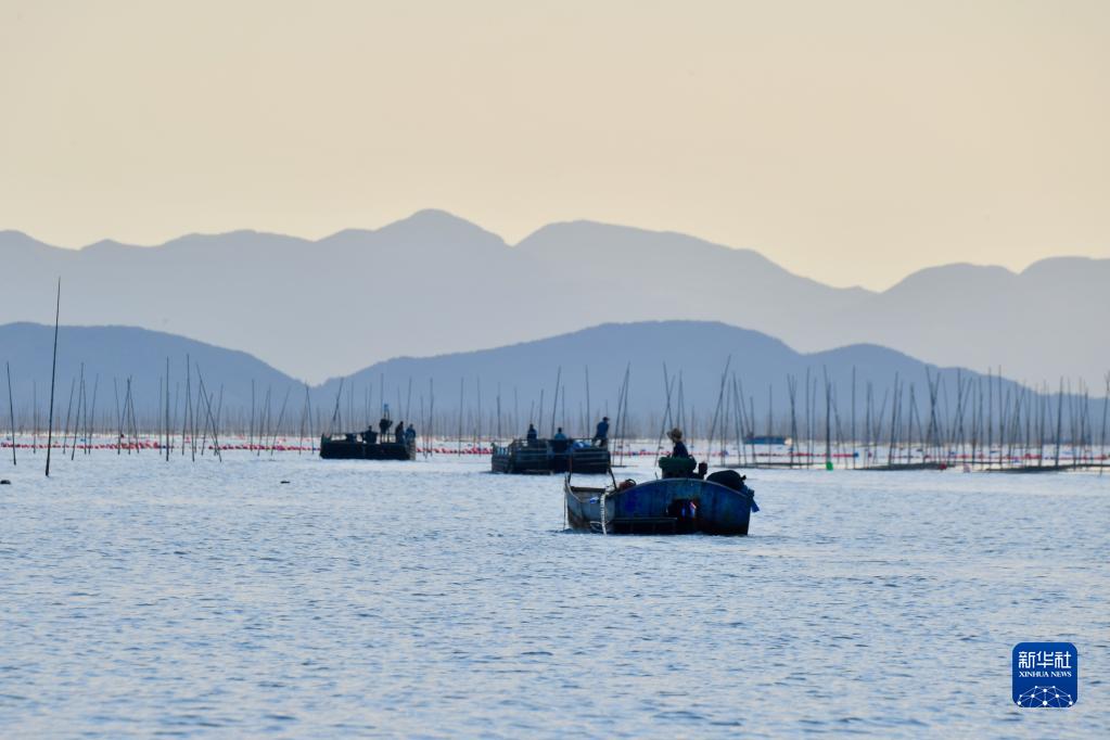 金秋十月,福建省寧德市霞浦縣6.5萬(wàn)畝海上養殖紫菜迎來(lái)收獲時(shí)節,漁民們操作收割船在大海中采收頭水紫菜,展開(kāi)一幅海上秋收畫(huà)卷。霞浦縣素有“中國紫菜之鄉”美譽(yù),形成紫菜育苗、種植、加工全產(chǎn)業(yè)鏈條,年產(chǎn)值近10億元。紫菜成為當地群眾增收致富的支柱產(chǎn)業(yè)。