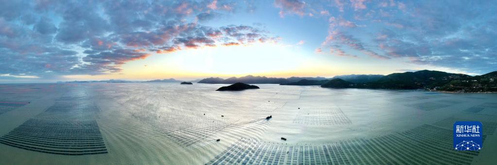 金秋十月,福建省寧德市霞浦縣6.5萬(wàn)畝海上養殖紫菜迎來(lái)收獲時(shí)節,漁民們操作收割船在大海中采收頭水紫菜,展開(kāi)一幅海上秋收畫(huà)卷。霞浦縣素有“中國紫菜之鄉”美譽(yù),形成紫菜育苗、種植、加工全產(chǎn)業(yè)鏈條,年產(chǎn)值近10億元。紫菜成為當地群眾增收致富的支柱產(chǎn)業(yè)。