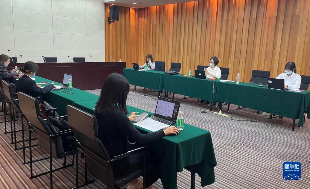 10月20日,在廣交會(huì )的辦公樓內,工作人員為供應商和采購商做對接活動(dòng)。