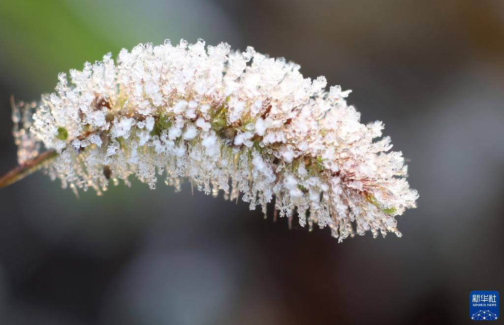 10月18日,在河北省邢臺市廣宗縣東召鄉田家屯村,狗尾草上結了霜。