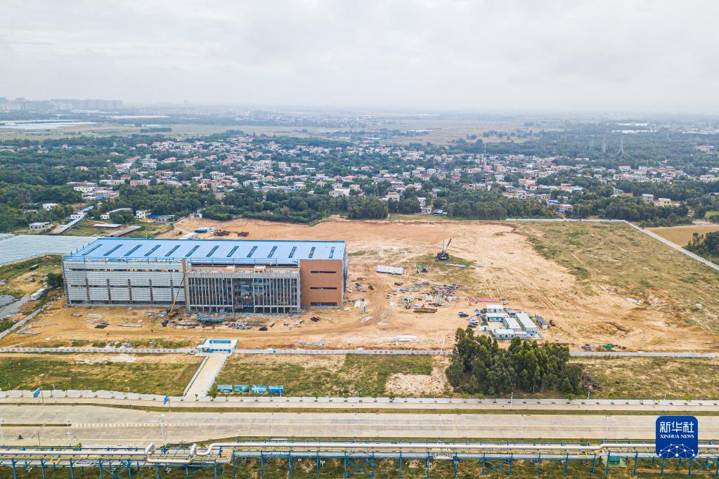 在海南東方臨港產(chǎn)業(yè)園拍攝的建設中的東方明陽(yáng)新能源高端裝備產(chǎn)業(yè)基地項目(無(wú)人機照片,10月21日攝)。