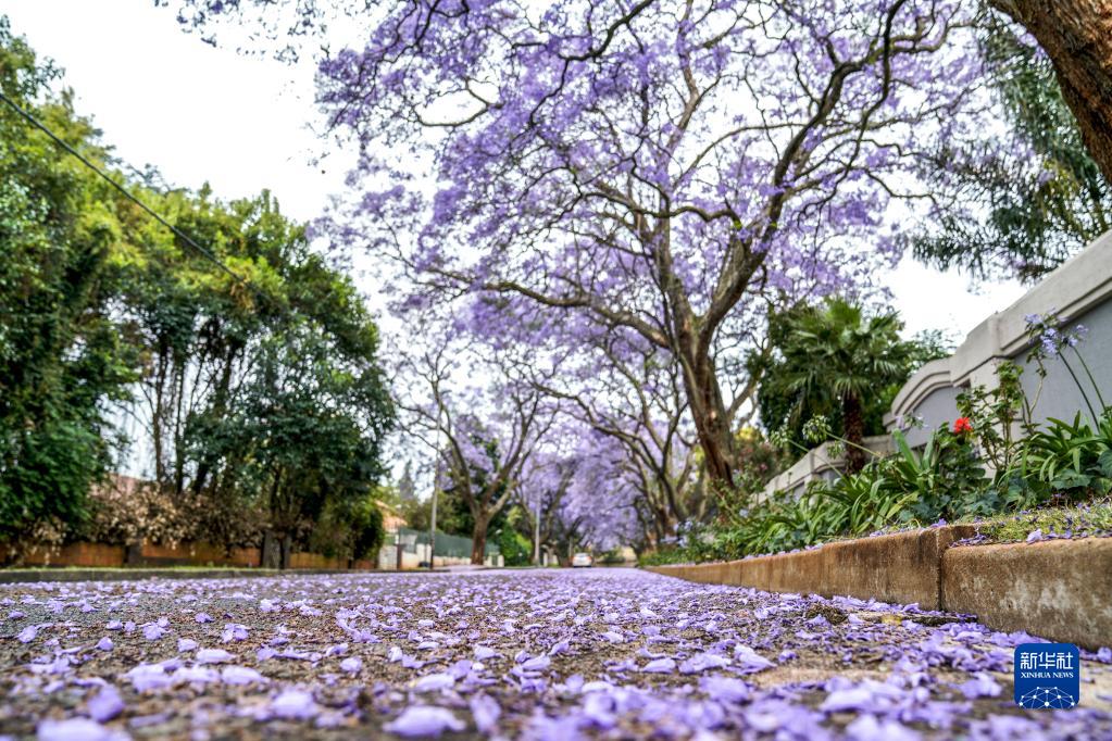 這是10月24日在南非約翰內斯堡拍攝的盛開(kāi)的藍花楹。