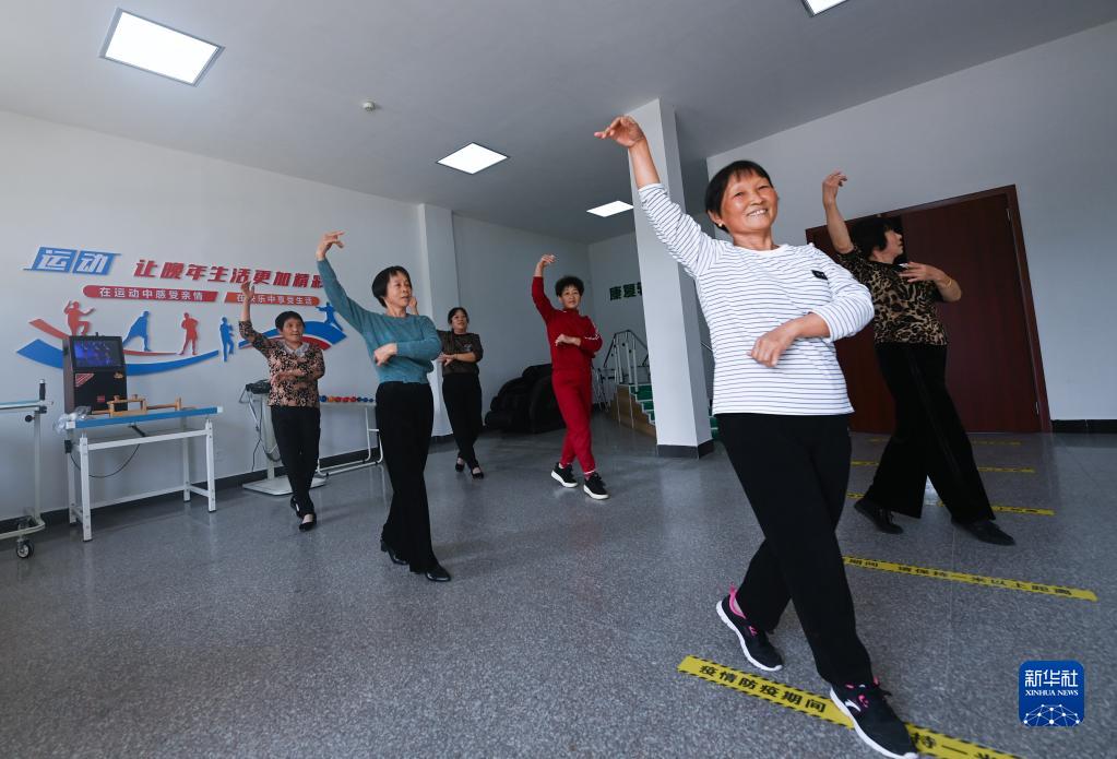 10月25日,在杭州市臨安區昌化鎮居家養老服務(wù)中心,老人們參加舞蹈排練。