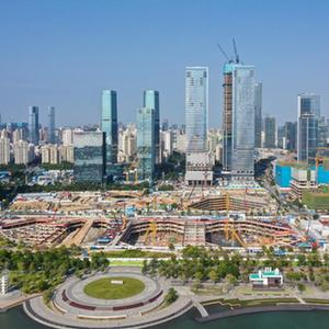 建設中的深圳灣文化廣場(chǎng)(10月25日攝,無(wú)人機照片)。